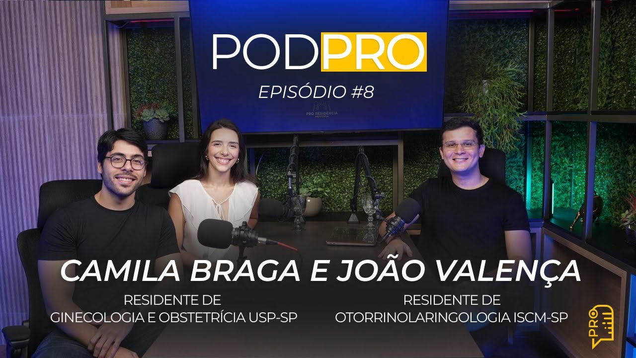 Nossos convidados do 8º episódio do PODPRO foram a Camila Braga, residente de GO na USP-SP, e o João Valença, residente de Otorrinolaringologia na Santa Casa-SP.